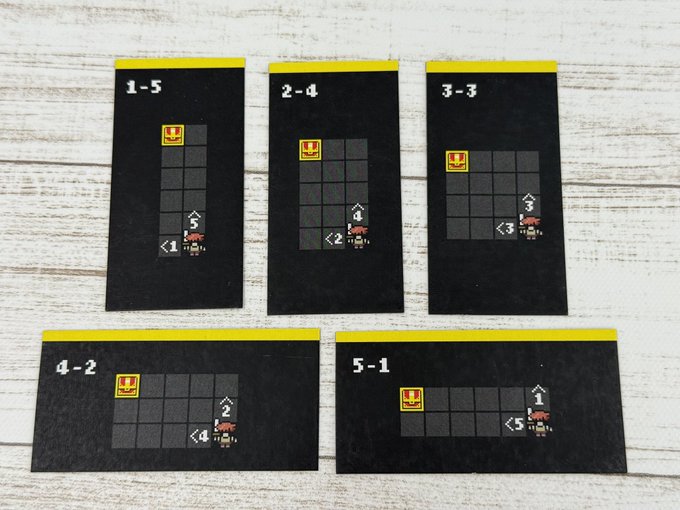 〇座標だけが指定された、見えない宝が配置されます(例「スタート地点から←に2歩、↑ に3歩の位置に行け」等)。これに対して、通常モードと同じように道をつなげて、その地点に向かう必要があります。勿論道は最後に置いた1枚しか見えません。しかし協力なので、誰かのミスは他の誰かがフォローすればなんとかなります!